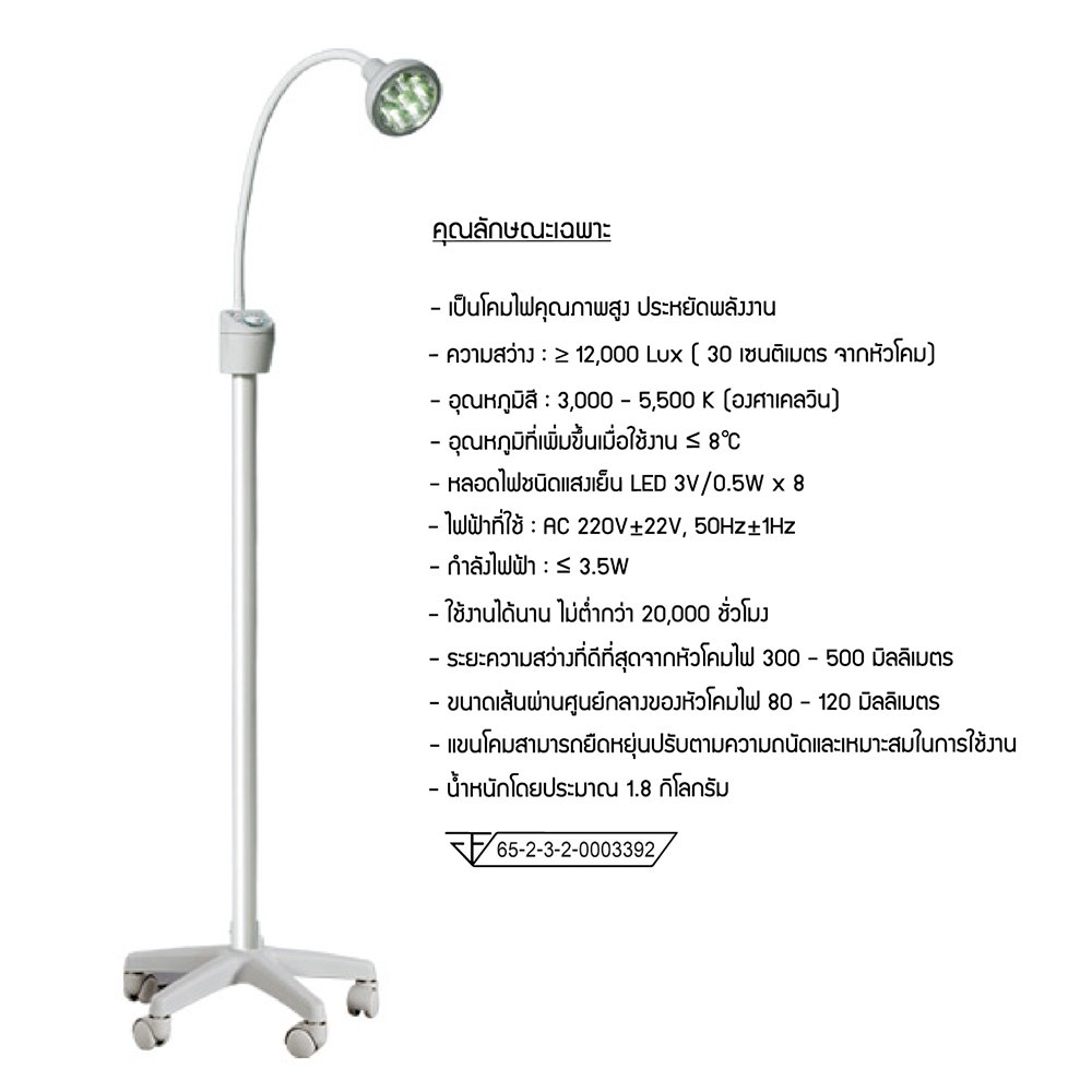 - ชื่อผลิตภัณฑ์: Mobile Operating Auxiliary Lighting Lamp (โคมไฟผ่าตัดและตรวจวินิจฉัยแบบล้อเลื่อน)